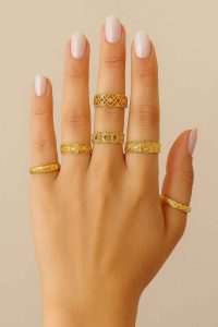 This four-piece set brings warmth and elegance to the look while still maintaining a relaxed, everyday feel. It’s the kind of jewelry that enhances your outfit without overpowering it, giving you that polished glow that feels effortless.