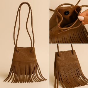 The Faux Leather Fringe Mini Crossbody Bag adds movement and texture to the outfit. Fringe details bring that classic boho feel and make your look more dynamic.