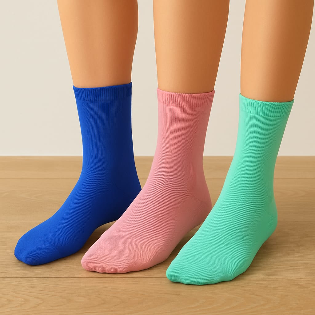 3 Pairs Assorted Vibrant Solid Color Crew Socks