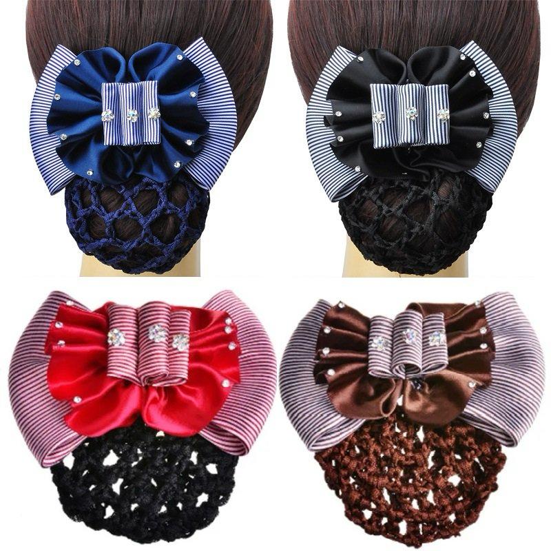Keep your hairstyle neat and stylish with this set of 3 elegant bow hair bun cover clips. Designed with a satin bow, striped accents, and rhinestone details, each clip comes with a built-in net to secure and cover your bun beautifully. Perfect for daily wear, office use, school, and special occasions.