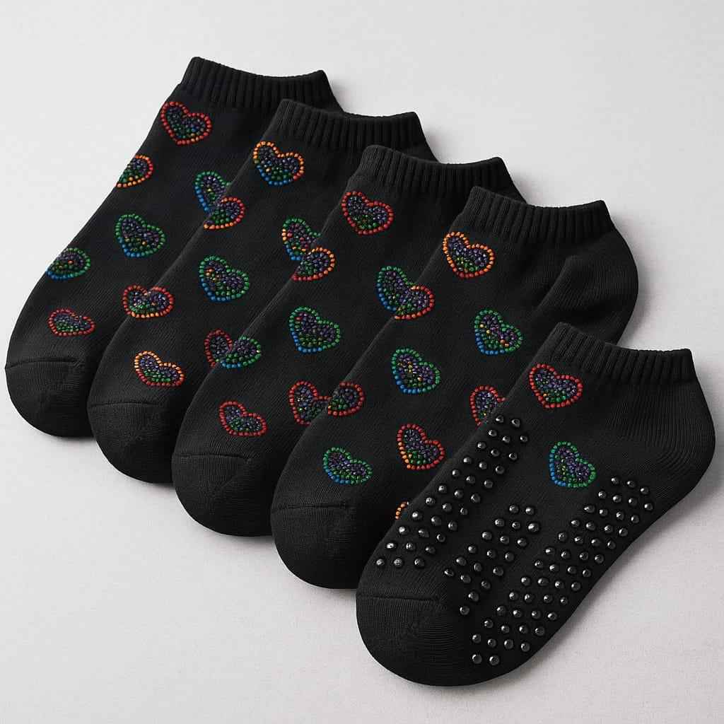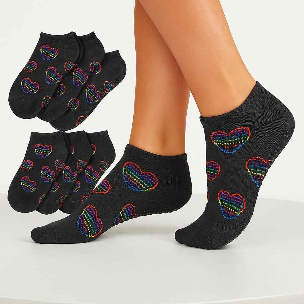 4 Pairs Rainbow Heart Anti-Slip Low Cut Socks