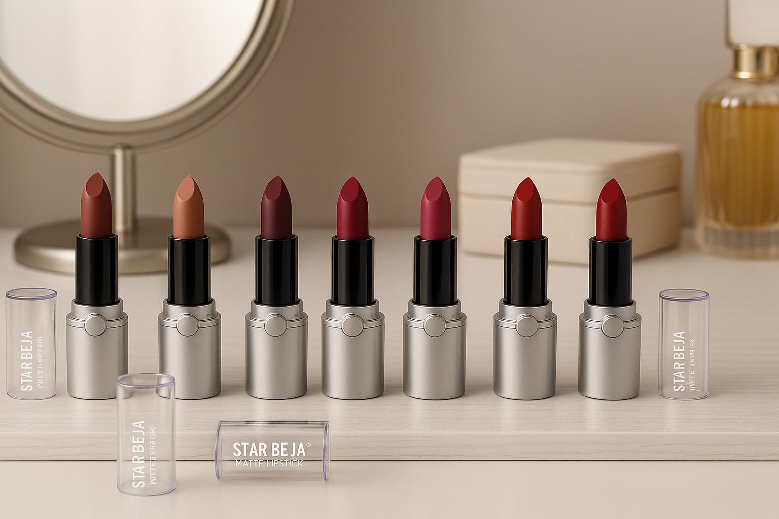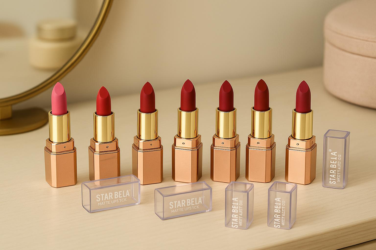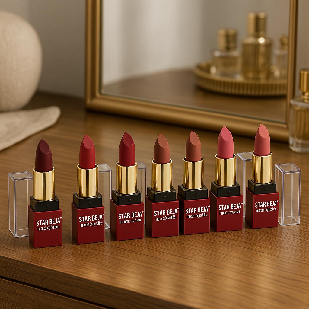 Unleash timeless elegance with the Star Bela Matte Lipstick Collection, designed to give your lips rich, luxurious color with a smooth, velvet-matte finish. Each shade glides effortlessly, offering intense pigmentation and long-lasting wear without drying out your lips.