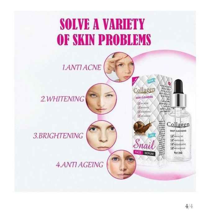 Revitalize your skin with the nourishing power of Collagen Snail Face Serum, specially formulated for deep cleansing, anti-acne, whitening, brightening, and anti-ageing benefits. Enriched with snail extract and collagen, this serum helps repair damaged skin, reduce fine lines, and improve skin elasticity, leaving your complexion smoother and more radiant.
