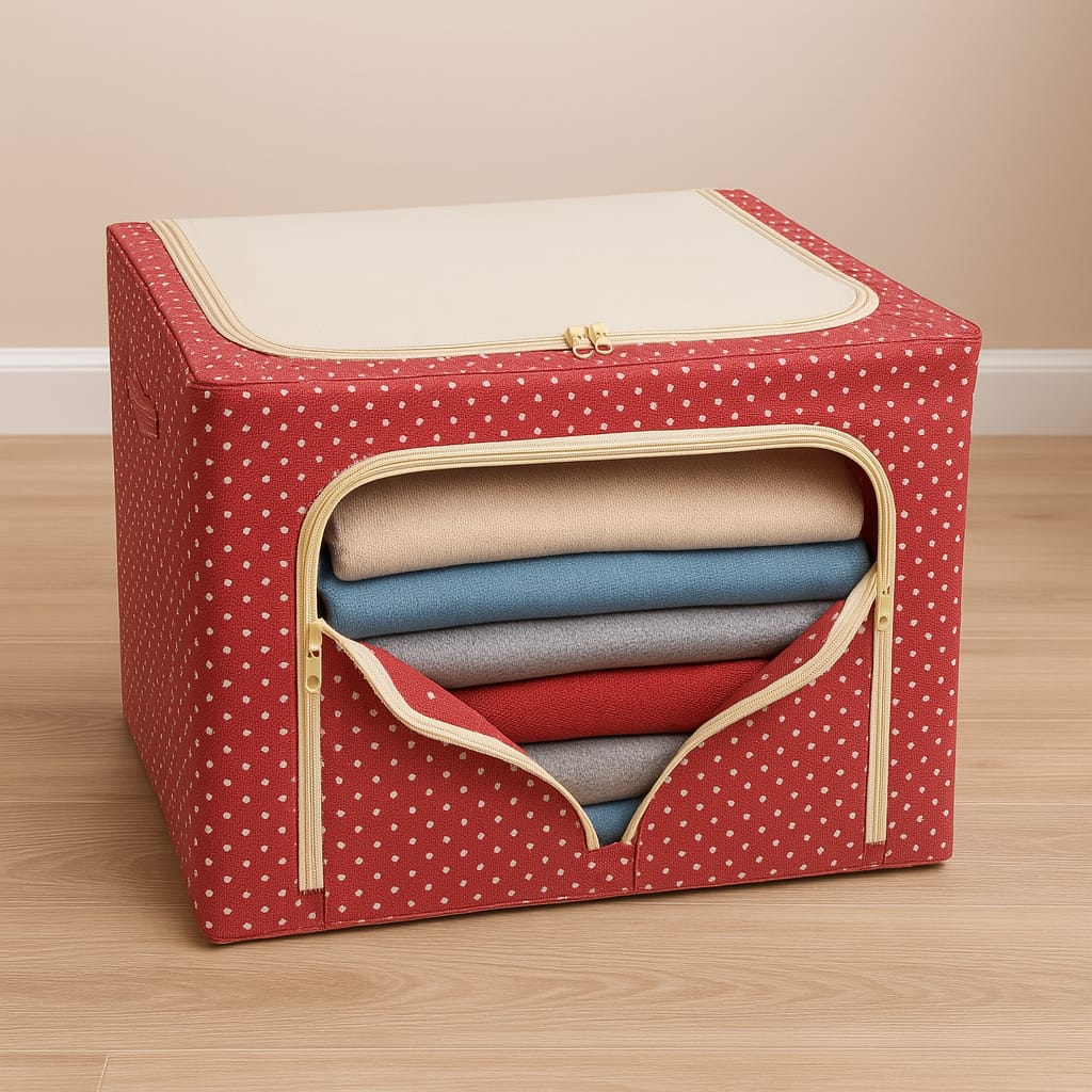 Organize your home efficiently with this foldable storage box. Designed with a sturdy metal frame for extra durability, it provides ample space to store clothes, blankets, toys, and other household items.