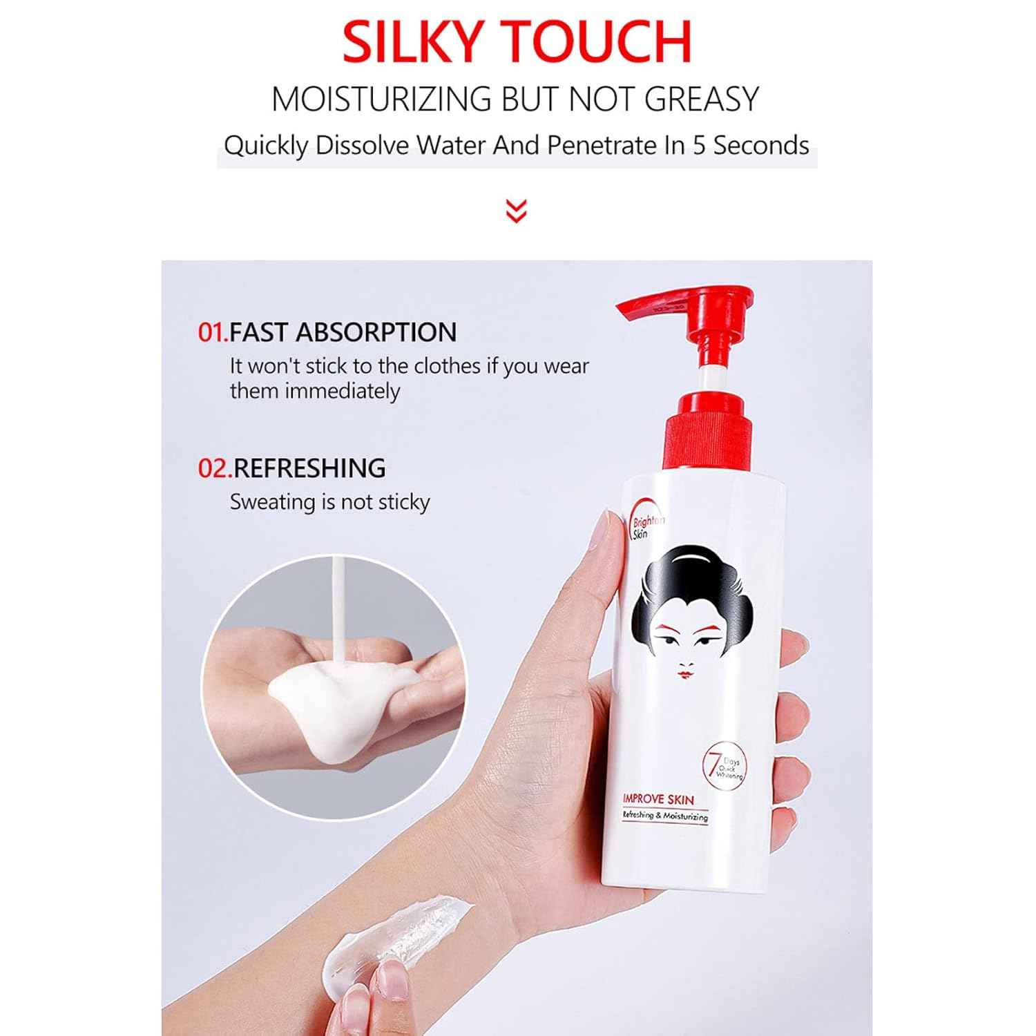 Brighten and nourish your skin with Guanjing Beauty Kojic Acid Body Lotion, designed to deliver visible whitening results in just 7 days. Enriched with Kojic Acid, this lotion helps reduce dark spots, even out skin tone, and improve skin clarity. Its refreshing and moisturizing formula leaves your skin feeling soft, smooth, and hydrated all day long.