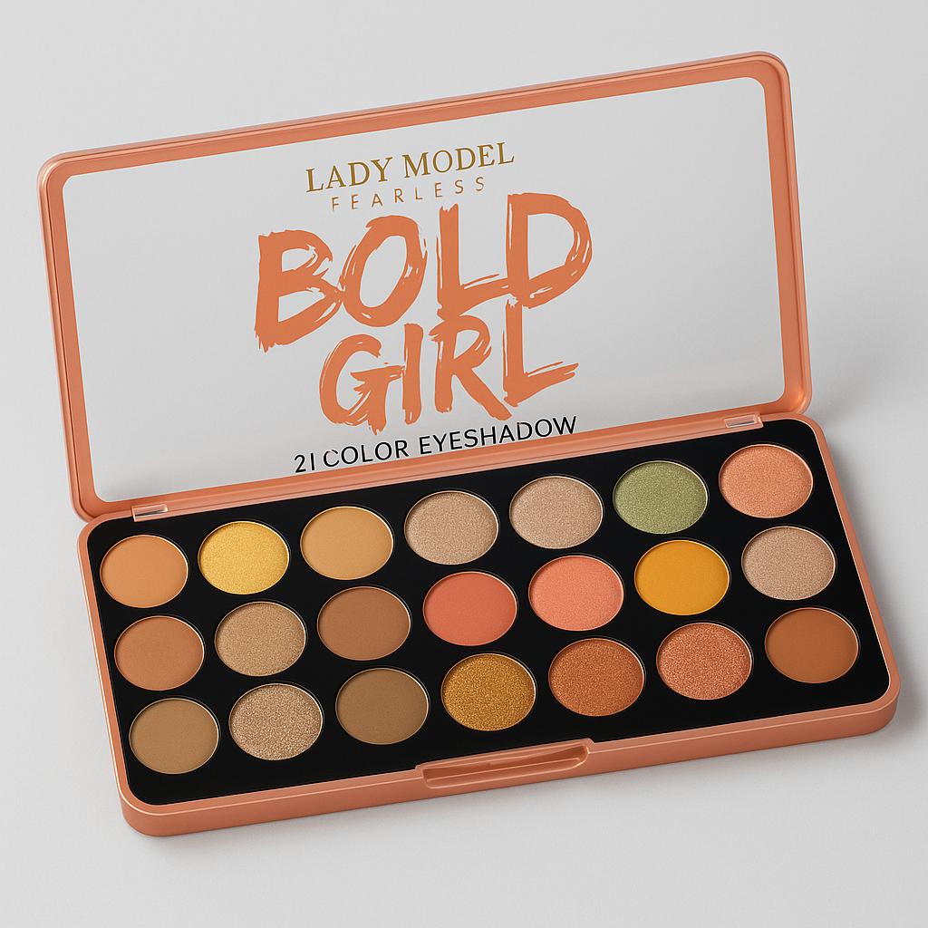 Step into bold beauty with the Lady Model Fearless Bold Girl Eyeshadow Palette, featuring 21 stunning shades that blend perfectly for every occasion. From soft neutrals to vibrant metallics, this palette is designed to inspire fearless creativity and bold looks.