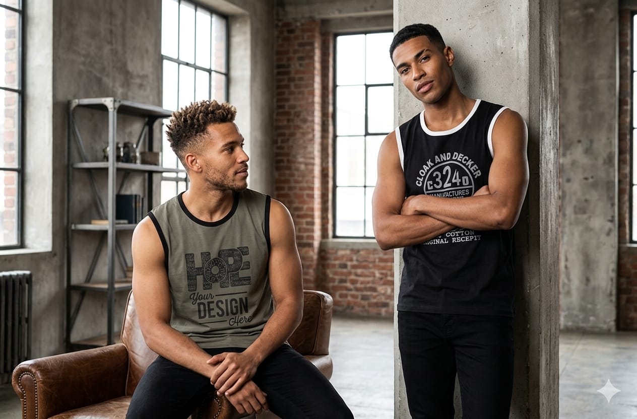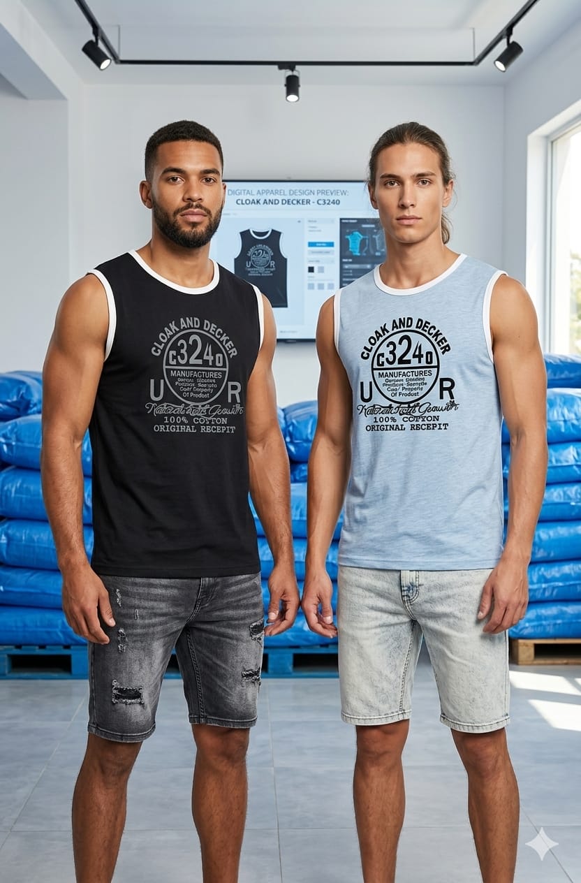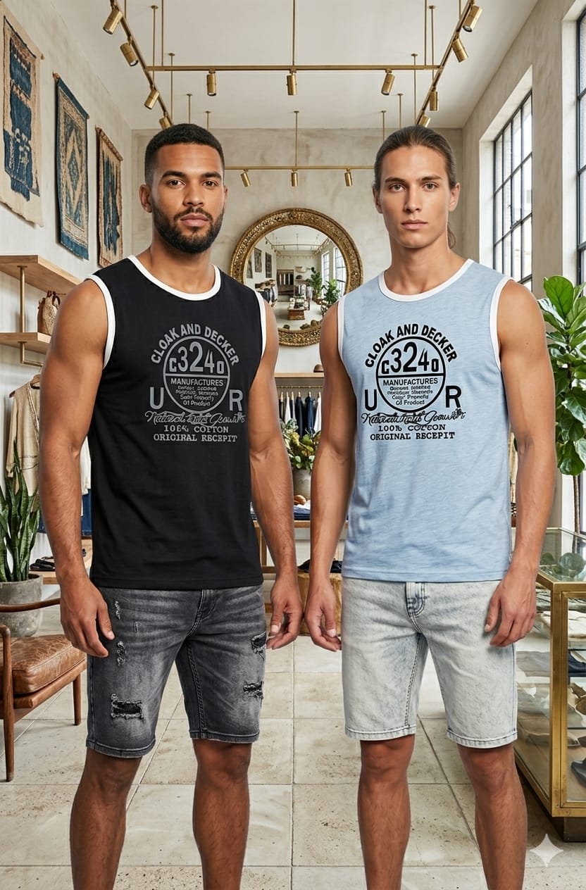 Men’s Cotton Sleeveless Gym & Casual Tank Top – Cloak & Decker Print – 2PCS Set