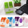 Stay cool anywhere with this Mini Dual Blade Portable USB Fan, designed for desks, offices, bedrooms, and travel use. Compact and lightweight, it features dual adjustable vents for wider airflow and a detachable drawer for ice, water, or aromatherapy pads to enhance your cooling experience.