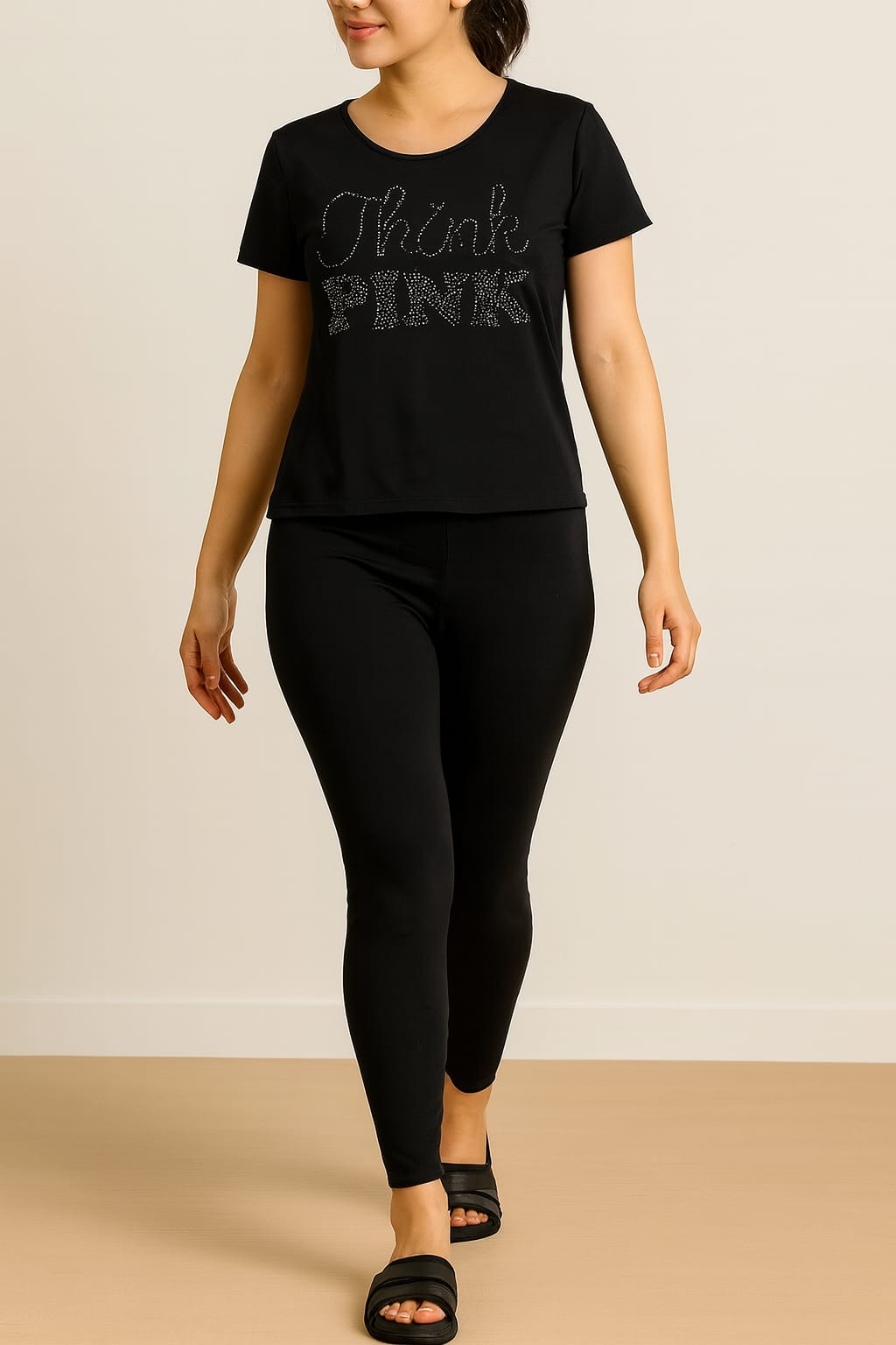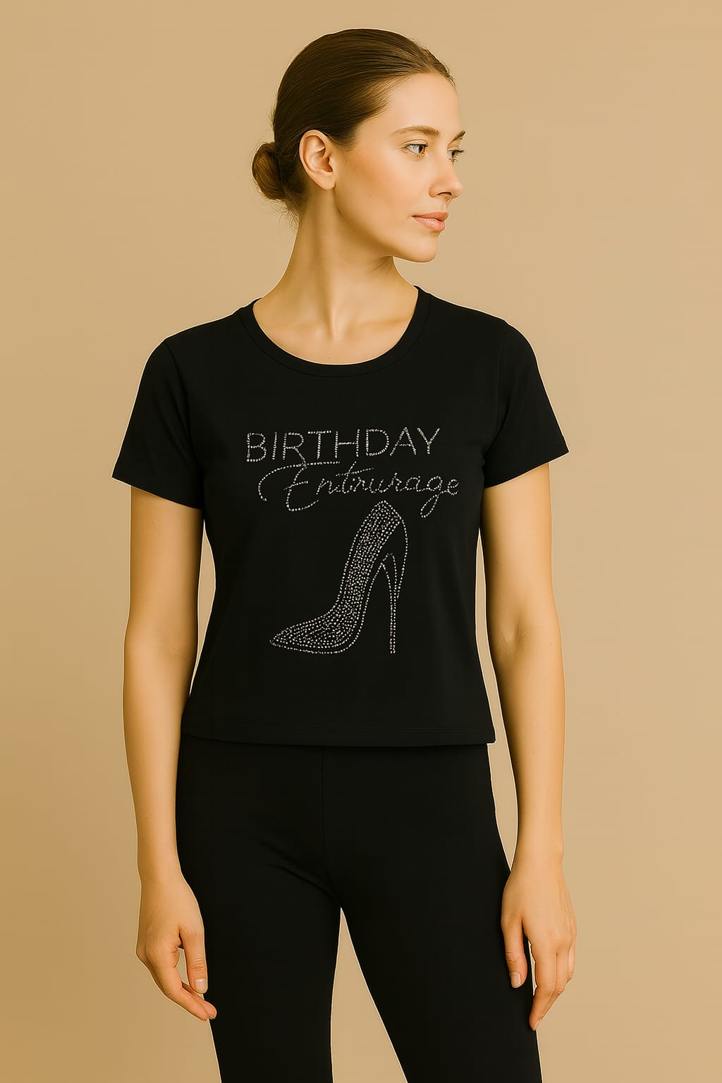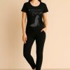 Add some sparkle to your casual wardrobe with these stylish, comfortable cord sets. Featuring eye-catching rhinestone designs on soft, stretchy fabric, this set includes a fitted black top paired with matching leggings for a sleek, coordinated look.