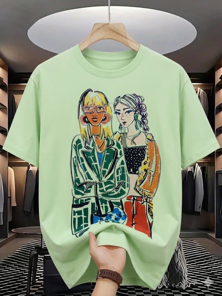 Elevate your everyday wardrobe with our Fashion Illustration Graphic T-Shirt. Featuring a vibrant, hand-drawn illustration of two fashion-forward icons, this t-shirt blends street-style edge with artistic flair. Whether you’re heading to a casual brunch or a creative workspace, this piece serves as a wearable canvas that celebrates modern femininity and bold style.