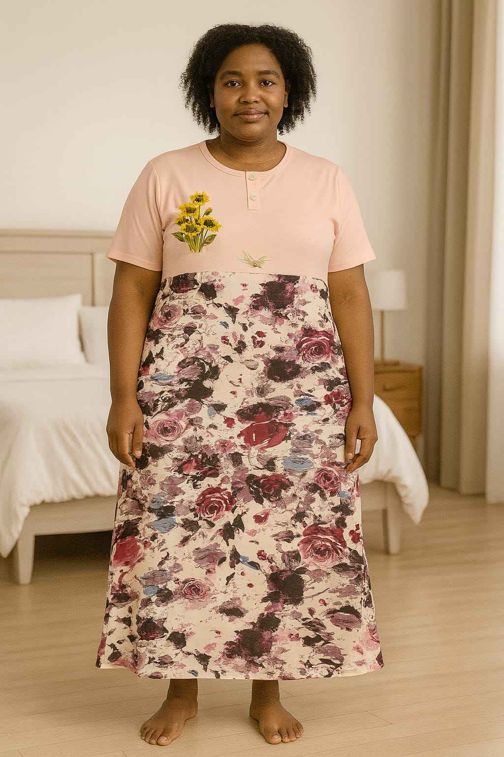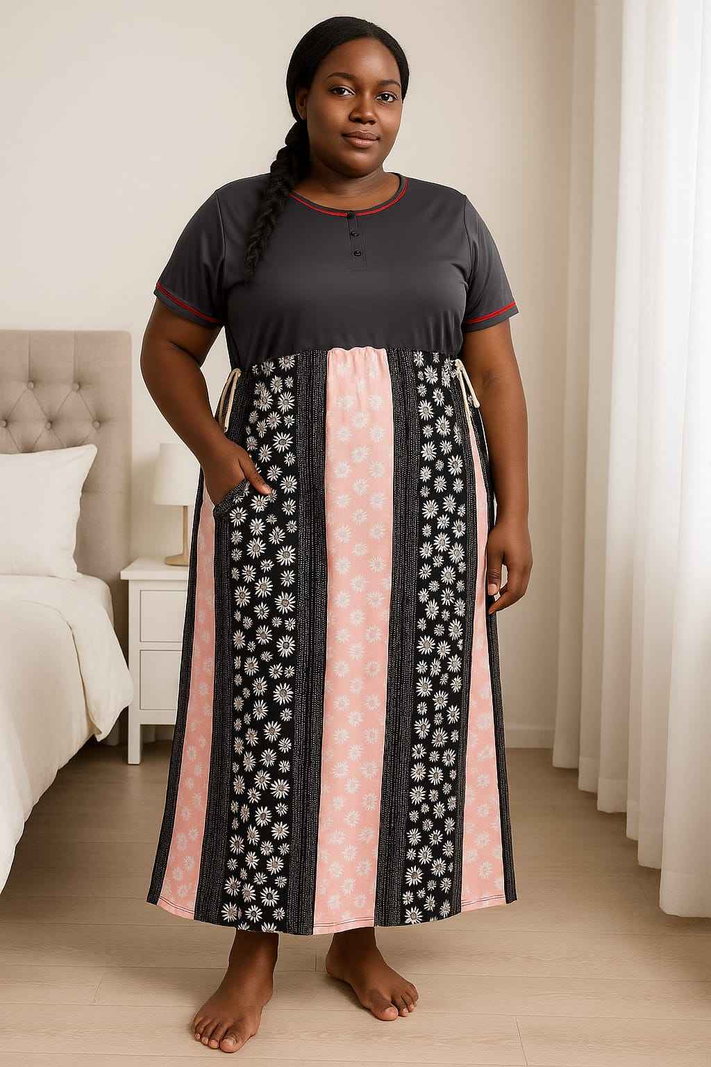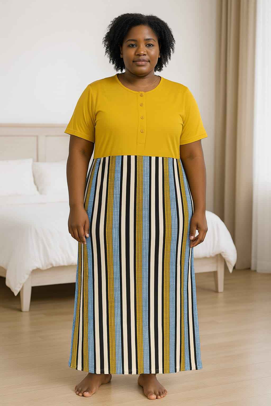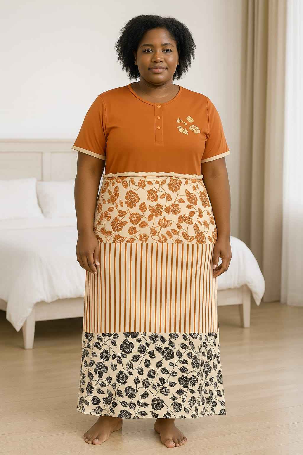 Stay comfortable and stylish at home with this Women’s Printed Cotton Nightdress designed especially for plus-size elegance. Made from soft and breathable cotton fabric, it ensures all-day comfort whether you’re lounging or sleeping. Featuring short sleeves, button-front detailing, and vibrant mixed prints including florals, stripes, and abstract patterns, this nightdress combines practicality with charm. Its relaxed fit and ankle-length design provide ease of movement and a flattering look for every body shape.