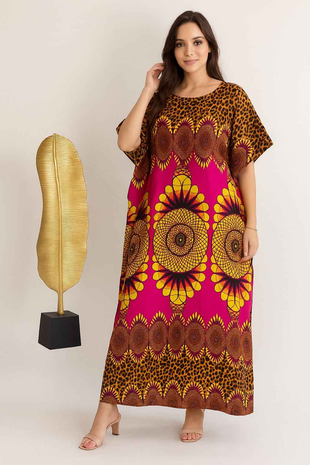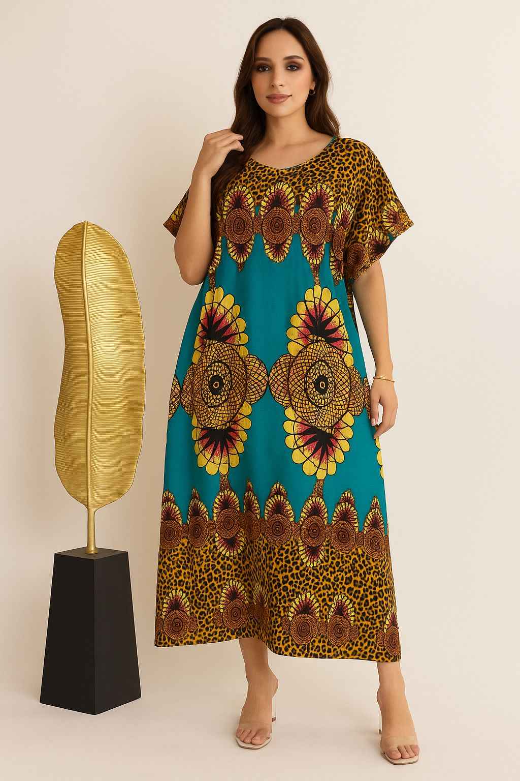 • Pattern: Bold African-inspired prints with circular motifs and leopard accents.