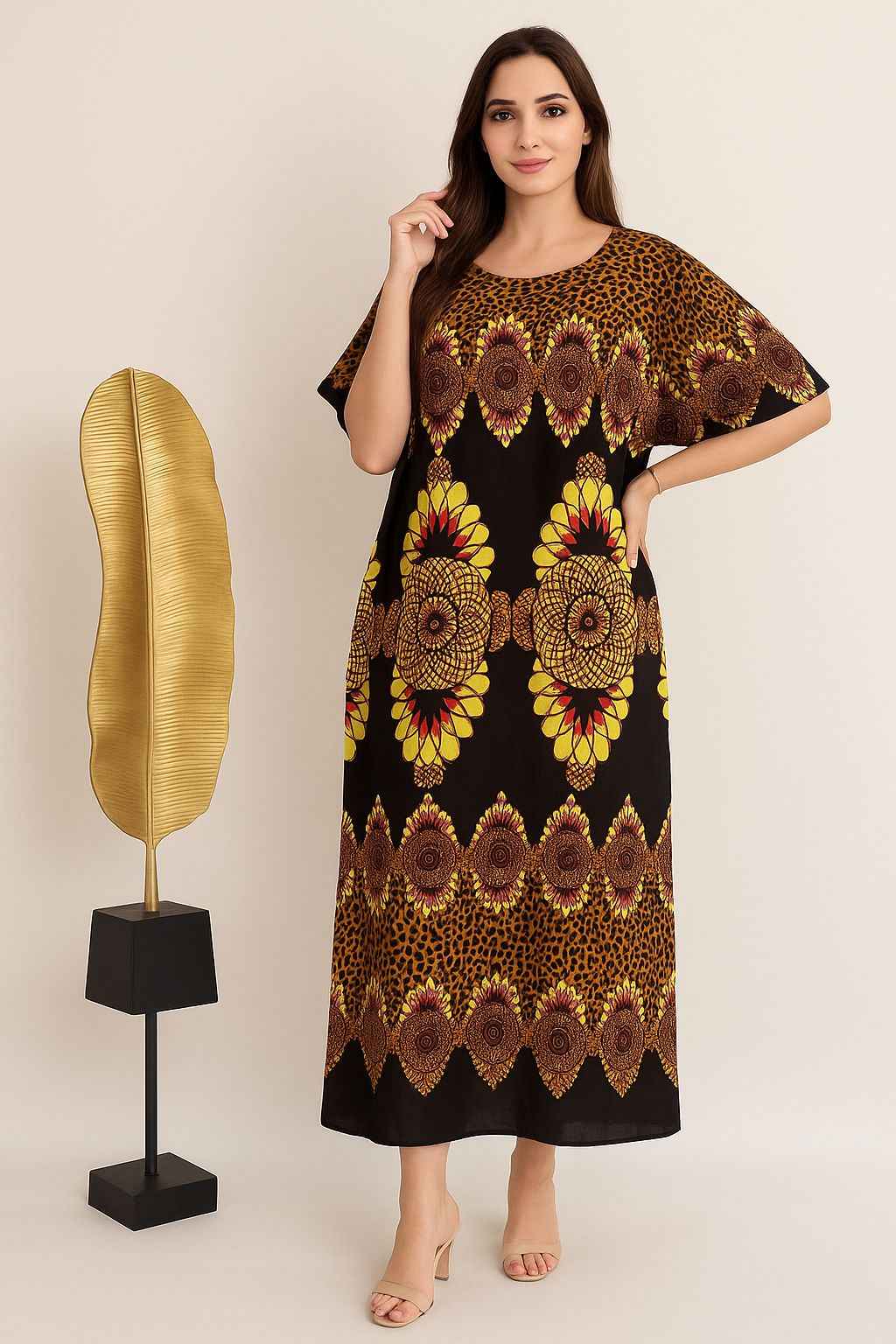 • Design: Loose-fitting kaftan style with wide sleeves for comfort and elegance.
